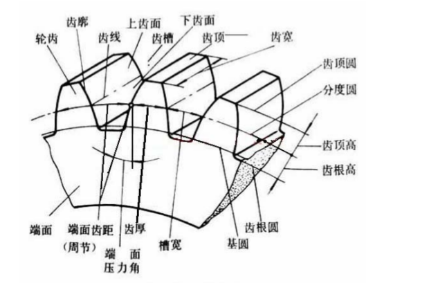 齿轮是能互相啮合的有齿的机械零件,它在机械传动及整个机械领域中的应用极其广泛。现代齿轮技术己达到:齿轮模数0.004-100毫米:齿轮直径由1毫米~150米:传递功率可达十万千瓦:转速可达十万转/分:最高的圆周速度达300米/秒。齿轮减速机齿轮的组成结构一般有轮齿、齿槽、端面、法面、齿顶国、齿根圆、荃回、分度圆。齿轮各部分有独立的专业名称:分度圆、端面、法面、齿线、端面压力角、齿线、端面压力角、全齿高、齿根高、齿顶高、径节、径节、齿距、齿厚、齿廓、齿廓、齿线、分度圆、齿根圆。分度圆、齿顶圆、齿根圆、齿距、齿宽、齿厚、槽宽、齿顶高、齿根高、全齿高、顶隙、中心距、压力角、导程、齿直角压力角、轴平面压力角。