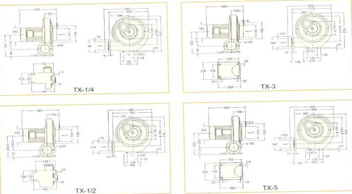 TX透浦式鼓风机的特点高压力.重量轻.风量大.寿命长.噪音低.无油无污染.并且用途相当广泛.适合用于机器送风冷却用.干燥机械.木工机械.厨房机械.马达类送风冷却之类等.......