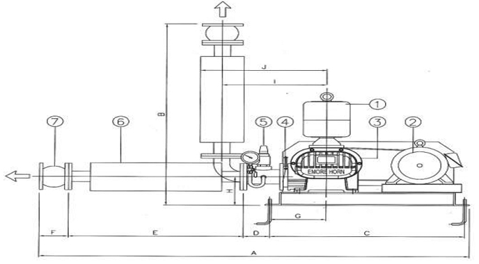 5、鲁式鼓风机压送—压送型鼓风机吐出空气之脉动,可更平滑的进行,噪音及振动均可大幅度减低,因此,就小型鼓风机而言,可免加装出口消音器