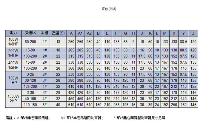 台湾CPG(城邦)二代卧式标准/缩框单相铝壳刹车马达减速机规格如下: